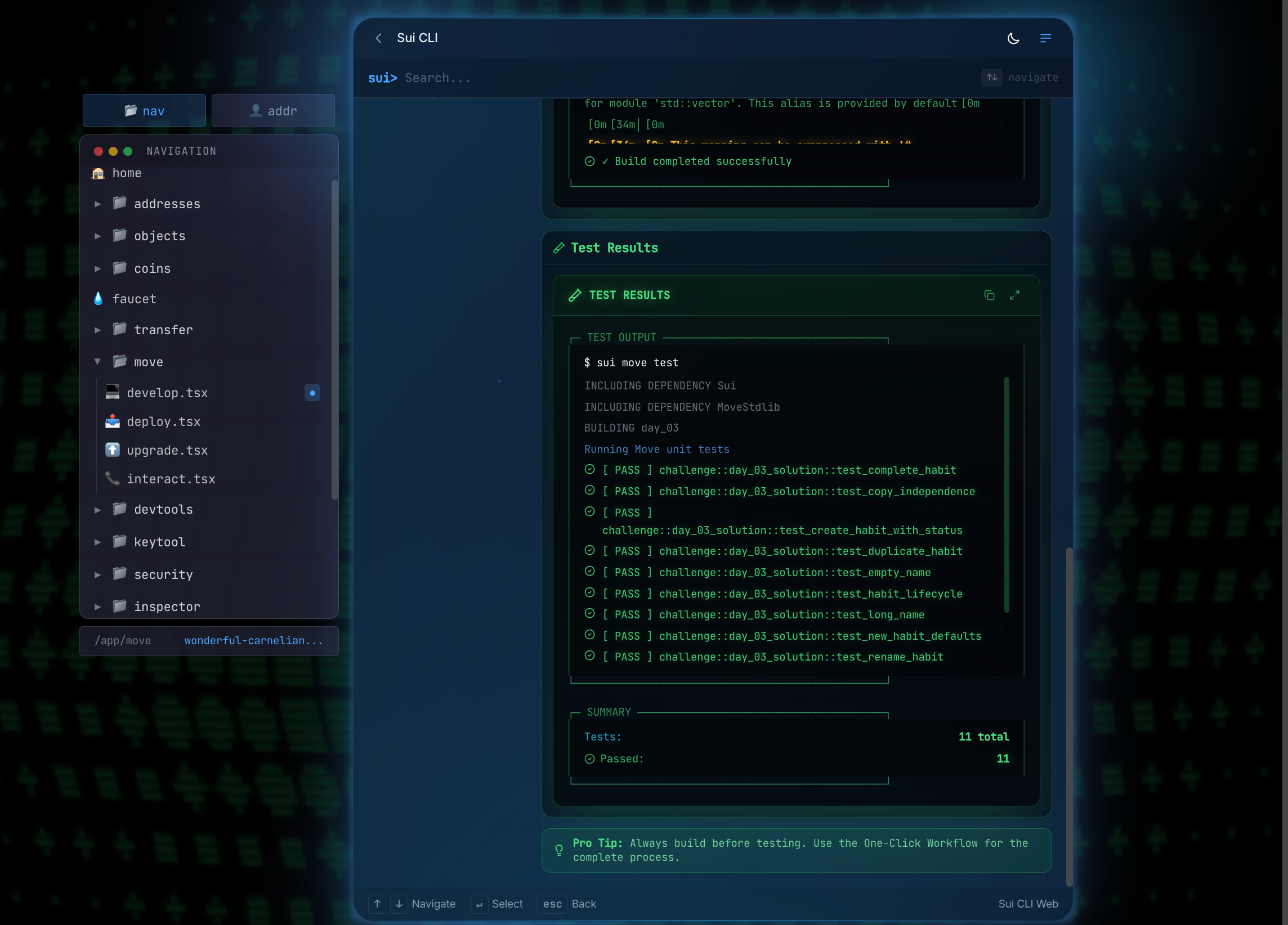 After running tests, letβs deploy and interact with your Habit struct on-chain!